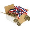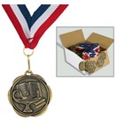 Our lightweight, 1.75" medals are a true budget and time saver! Sold in Sets of 100 only and include a top-quality .875" neck ribbon attached. Combine titles for quantity discounts. Only available with red, white and blue neck ribbon. Ship in 24 hours. NECK RIBBON IS PRE-ATTACHED! Price Shown is per bag of 100 medals per title.