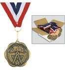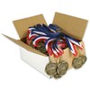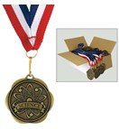 Our lightweight, 1.75" medals are a true budget and time saver! Sold in Sets of 100 only and include a top-quality .875" neck ribbon attached. Combine titles for quantity discounts. Only available with red, white and blue neck ribbon. Ship in 24 hours. NECK RIBBON IS PRE-ATTACHED! Price Shown is per bag of 100 medals per title.