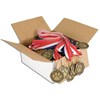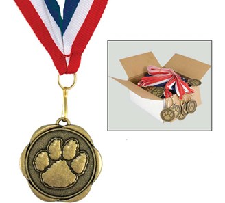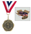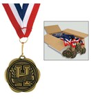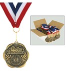 Our lightweight, 1.75" medals are a true budget and time saver! Sold in Sets of 100 only and include a top-quality .875" neck ribbon attached. Combine titles for quantity discounts. Only available with red, white and blue neck ribbon. Ship in 24 hours. NECK RIBBON IS PRE-ATTACHED! Price Shown is per bag of 100 medals per title.