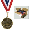 Our lightweight, 1.75" medals are a true budget and time saver! Sold in Sets of 100 only and include a top-quality .875" neck ribbon attached. Combine titles for quantity discounts. Only available with red, white and blue neck ribbon. Ship in 24 hours. NECK RIBBON IS PRE-ATTACHED! Price Shown is per bag of 100 medals per title.