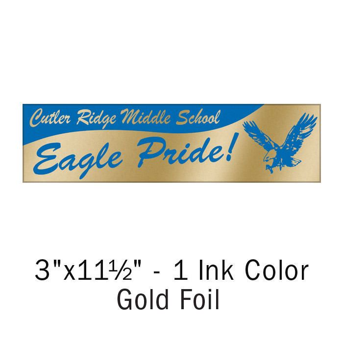 If you need bumper stickers, then you need to try ours. We make them with long-lasting vinyl that resists cracking, fading and peeling. Plus, they can be removed without leaving behind any sticky residue - making everyone much more likely to display them with pride! And our price is great, too - no setup charge, no art charges - everything is included. Size: 3" x 11.5" Color: One ink color on gold foil. Minimum order is 125. Shipped within 7 days after receipt of order.