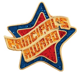 Sparkling! These glittering pins really show off your students' achievements. A full .875" made from our top quality enamel. Pins fasten with a .25" post and clutch back. Pins ship in 24 hours with titles combined for quantity discounts.