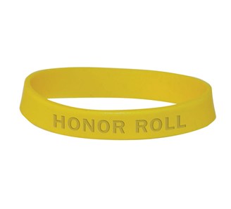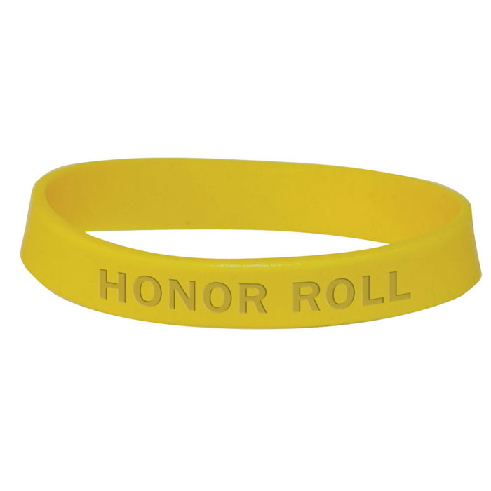 Affordable enough to give to each honor roll student. These popular and durable wristbands are sure to be a hit. A perfect lasting memento of their accomplishment. Wristbands are 7” in circumference and .5” tall. Combine colors for quantity discounts. Ship in 24 hours.