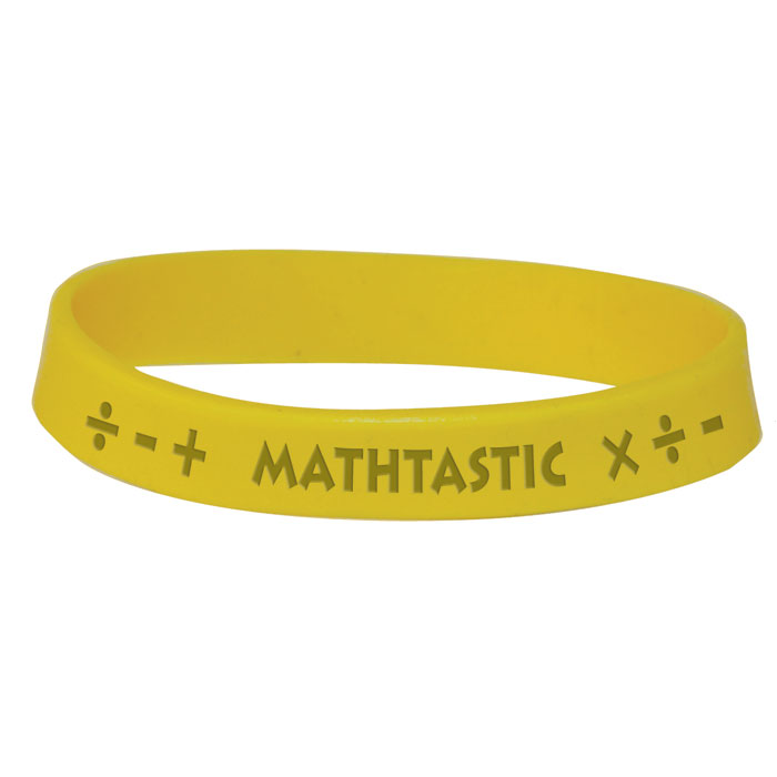 Affordable enough to give to each math student. These popular and durable wristbands are sure to be a hit. A perfect lasting memento of their accomplishment. Wristbands are 7” in circumference and .5” tall. Combine colors for quantity discounts. Ship in 24 hours.