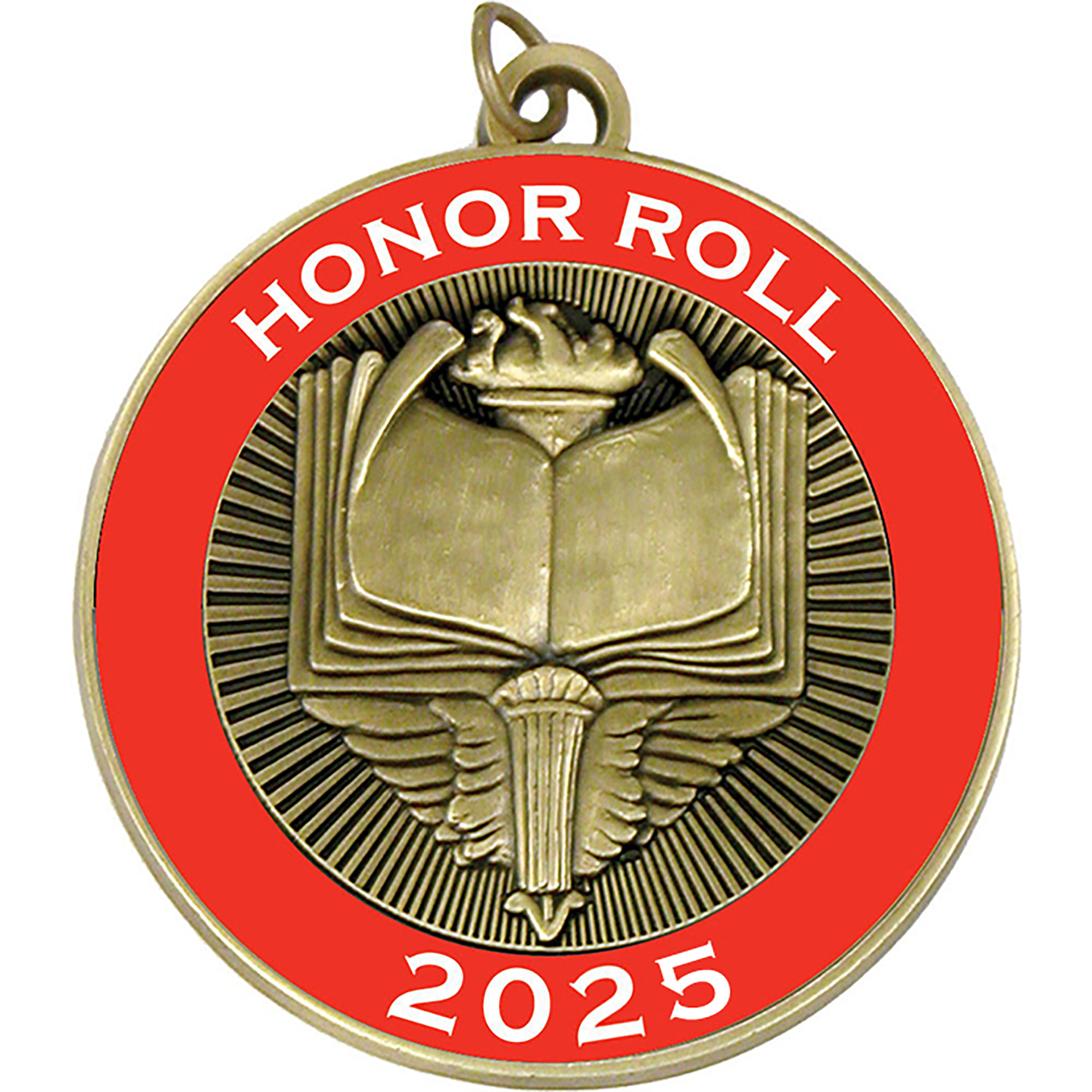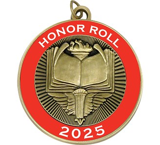 Customize this stunning 2.5" heavyweight medal with your school colors. Six color combinations are available in two of our most popular titles - Honor Roll, Perfect Attendance, and Reading - available to ship in just 6 business days. Stock titles and colors can be combined for quantity discounts.