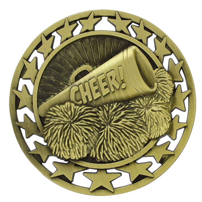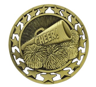 A big, 2.5" medal at a great price. This terrific star design is available in gold in stock for immediate shipment in all 11 titles. The torch and lamp can be shipped in silver and bronze within 24 hours as well. For other title and color combinations, we need an additional 5 days. Combine titles for quantity discounts.