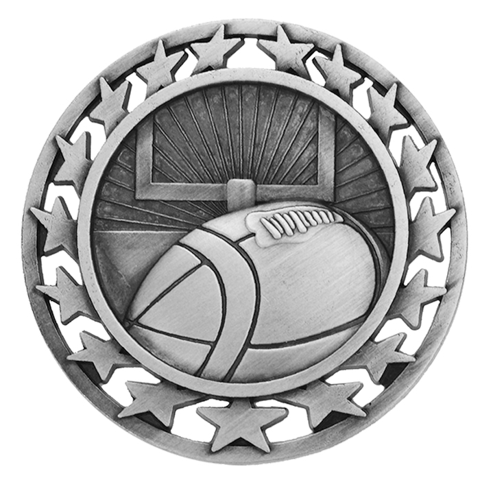 A big, 2.5" medal at a great price. This terrific star design is available in gold in stock for immediate shipment in all 11 titles. The torch and lamp can be shipped in silver and bronze within 24 hours as well. For other title and color combinations, we need an additional 5 days. Combine titles for quantity discounts.