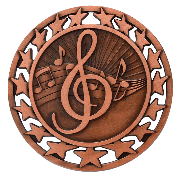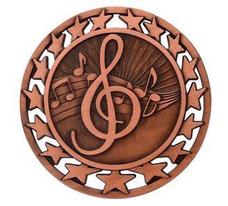 A big, 2.5" medal at a great price. This terrific star design is available in gold in stock for immediate shipment in all 11 titles. The torch and lamp can be shipped in silver and bronze within 24 hours as well. For other title and color combinations, we need an additional 5 days. Combine titles for quantity discounts.