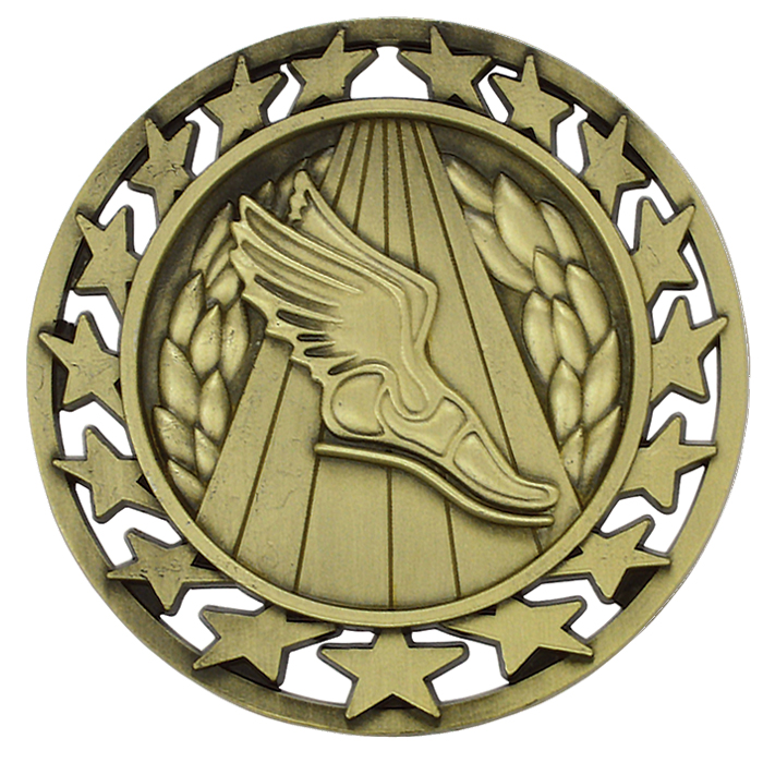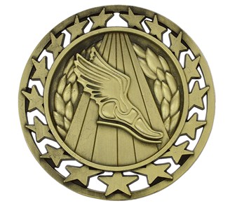 A big, 2.5" medal at a great price. This terrific star design is available in gold in stock for immediate shipment in all 11 titles. The torch and lamp can be shipped in silver and bronze within 24 hours as well. For other title and color combinations, we need an additional 5 days. Combine titles for quantity discounts.