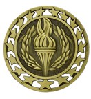 A big, 2.5" medal at a great price. This terrific star design is available in gold in stock for immediate shipment in all 11 titles. The torch and lamp can be shipped in silver and bronze within 24 hours as well. For other title and color combinations, we need an additional 5 days. Combine titles for quantity discounts.