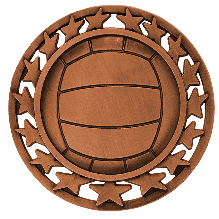 A big, 2.5" medal at a great price. This terrific star design is available in gold in stock for immediate shipment in all 11 titles. The torch and lamp can be shipped in silver and bronze within 24 hours as well. For other title and color combinations, we need an additional 5 days. Combine titles for quantity discounts.