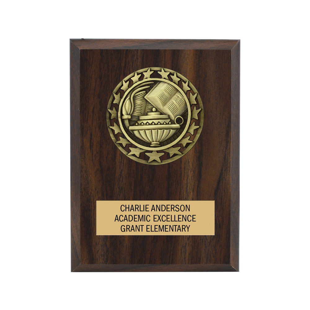 This plaque features our most popular titles of Star Line medals as a relief on a 4” x 6” walnut plaque board. Each plaque is shipped fully assembled within 3 business days. Free engraving includes 3 lines of 25 characters. Order now and get a $.50 discount per item for entering engraving text online!