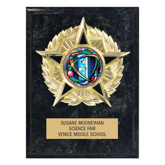These plaques use elegantly crafted, gold mylar holders. Each star holder perfectly frames the mylar best suited for your award event. Actual Size 6" x 8". Free engraving includes 3 lines of 25 characters. Shipped within 3 business days. Order now and get a $.50 discount per item for entering engraving text online!