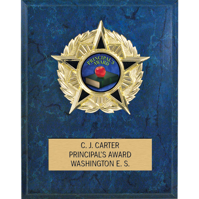 These plaques use elegantly crafted, gold mylar holders. Each star holder perfectly frames the mylar best suited for your award event. Actual Size 8" x 10". Free engraving includes 3 lines of 30 characters. Shipped within 3 business days. Order now and get a $.50 discount per item for entering engraving text online!
