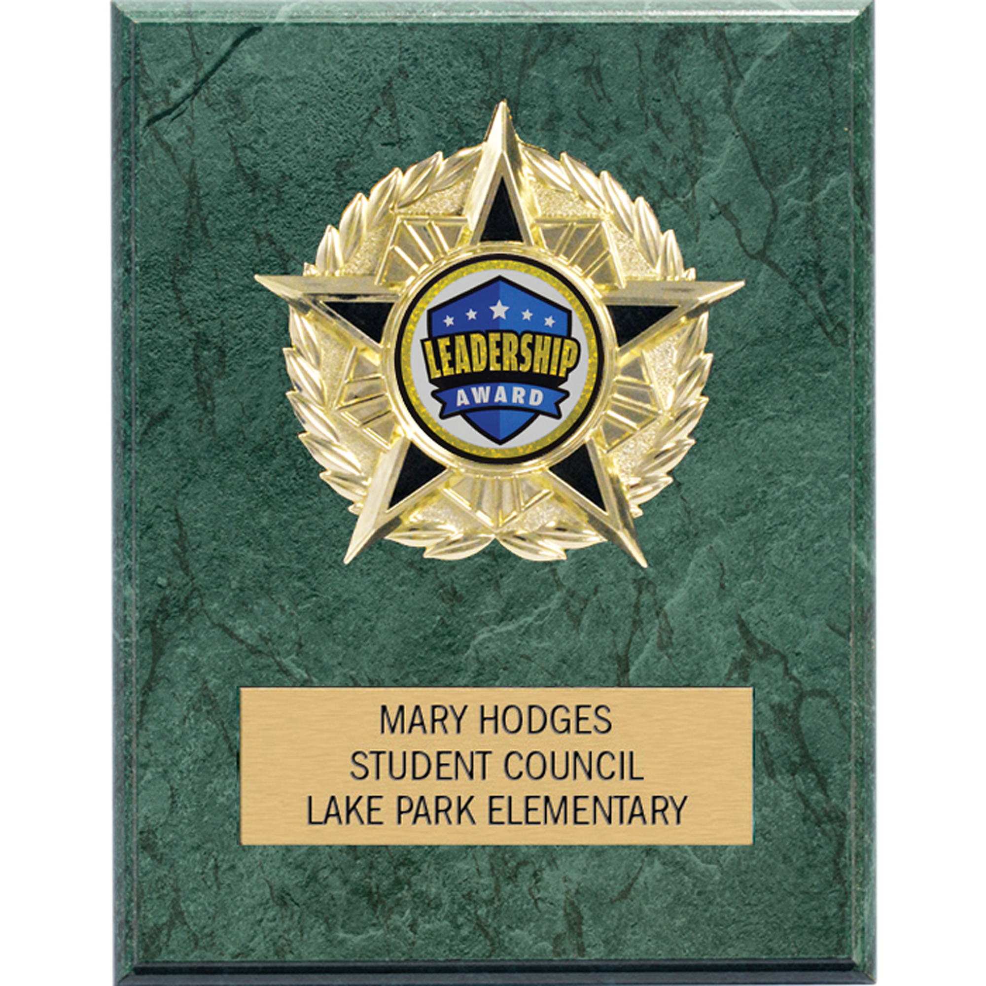 These plaques use elegantly crafted, gold mylar holders. Each star holder perfectly frames the mylar best suited for your award event. Actual Size 8" x 10". Free engraving includes 3 lines of 30 characters. Shipped within 3 business days. Order now and get a $.50 discount per item for entering engraving text online!