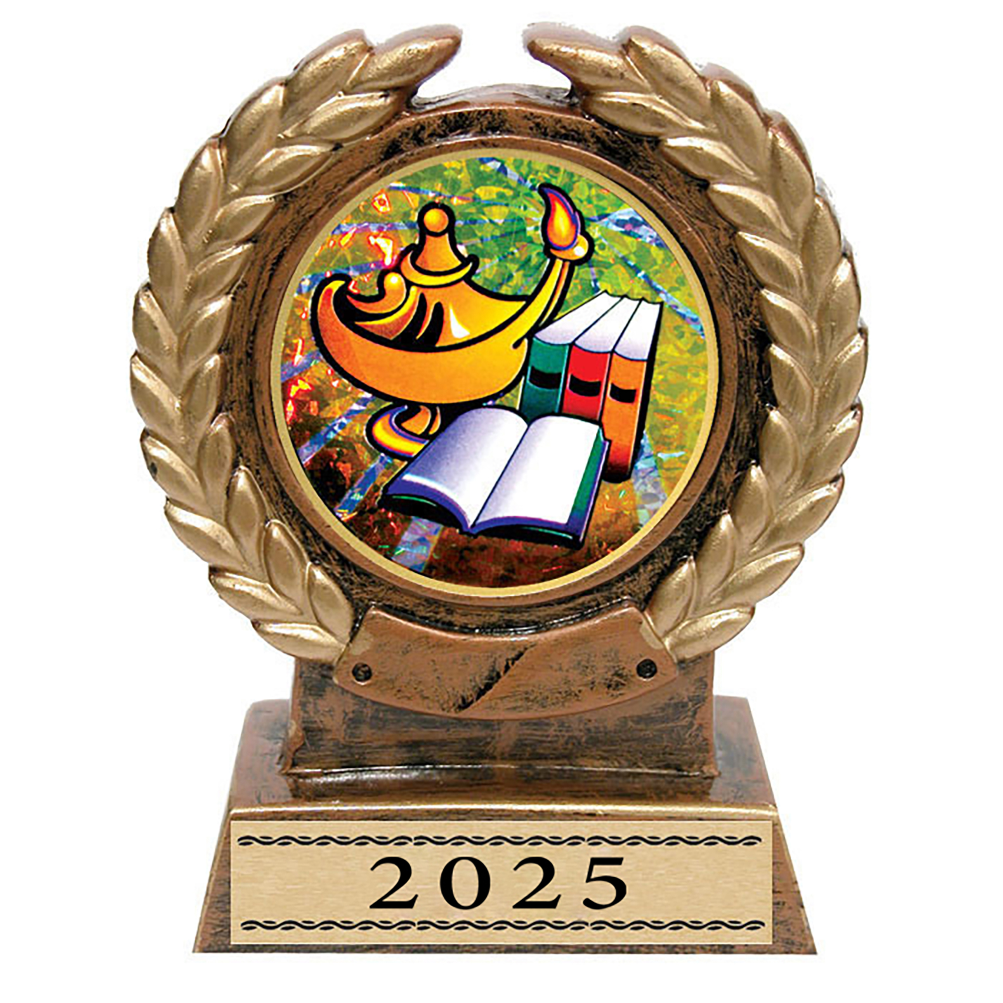 A great looking resin trophy shipped within 24 hours! Save time and money just choose a mylar for the center of the trophy title you want. We've kept the price down by allowing you to apply these two self-adhesive pieces yourself. Trophy is 3.5" x 4". Ships in just 24 hours! Titles combined for quantity discounts. (Sorry, this item cannot be engraved.)