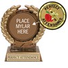 A great looking resin trophy shipped within 24 hours! Save time and money just choose a mylar for the center of the trophy title you want. We've kept the price down by allowing you to apply these two self-adhesive pieces yourself. Trophy is 3.5" x 4". Ships in just 24 hours! Titles combined for quantity discounts. (Sorry, this item cannot be engraved.)