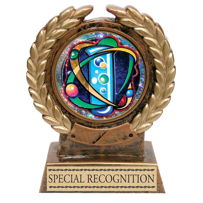 A great looking resin trophy shipped within 24 hours! Save time and money just choose a mylar for the center of the trophy title you want. We've kept the price down by allowing you to apply these two self-adhesive pieces yourself. Trophy is 3.5" x 4". Ships in just 24 hours! Titles combined for quantity discounts. (Sorry, this item cannot be engraved.)