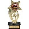 Lots of magnificent stars for your superstars! Even the base is star shaped. Choose your style trophy and any of our over 100 mylar titles. Includes an engraved plate. Order now and get a $.50 discount per item for entering engraving text online! Ships in 3 business days. Size: 4" x 7.625"
