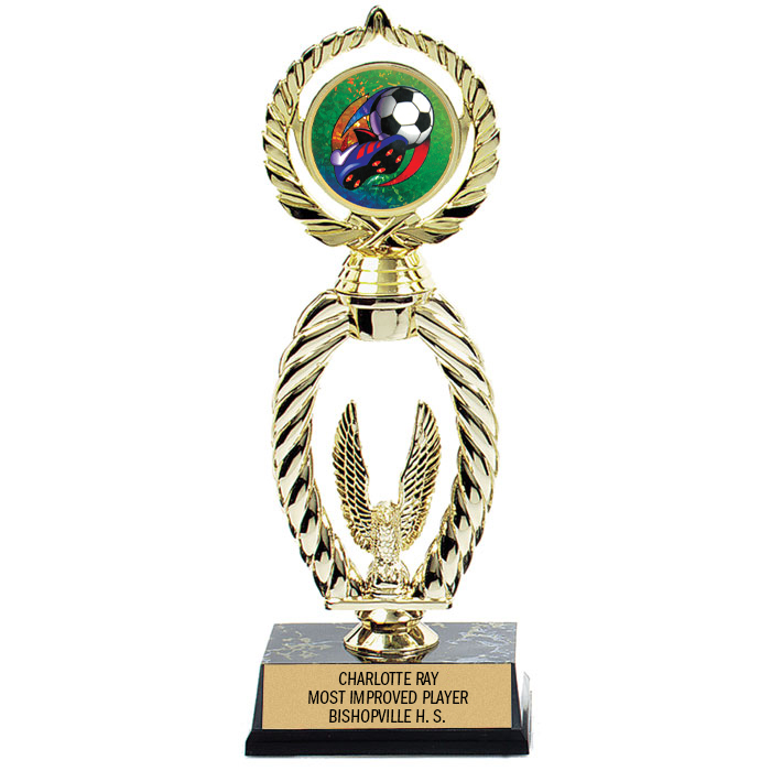 This is a traditional trophy at a competitive price. This trophy comes with soccer mylar No. 19524 and engraved lettering on a plate. We need just 3 business days as with all our engraving to produce this award to your specifications. Free engraving includes 3 lines of 30 characters. Order now and get a $.50 discount per item for entering engraving text online! Size: 3" x 10"