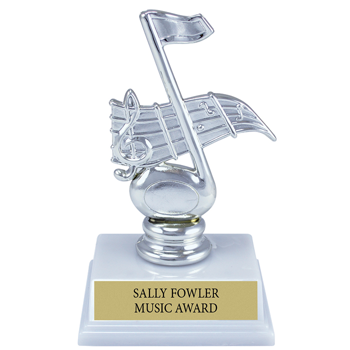 Everyone loves to receive a trophy, and now you can afford one for every student! This traditional top with a solid marble-look base comes with free personalization. We'll laser print your text on gold foil and ship within just 3 business days. Order now and get a $.50 discount per item for entering engraving text online! Approximate size: 3.25" x 5"