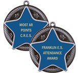 Item No. 7399SLBL - Star Silver Medal - Personalized with Blue Plate